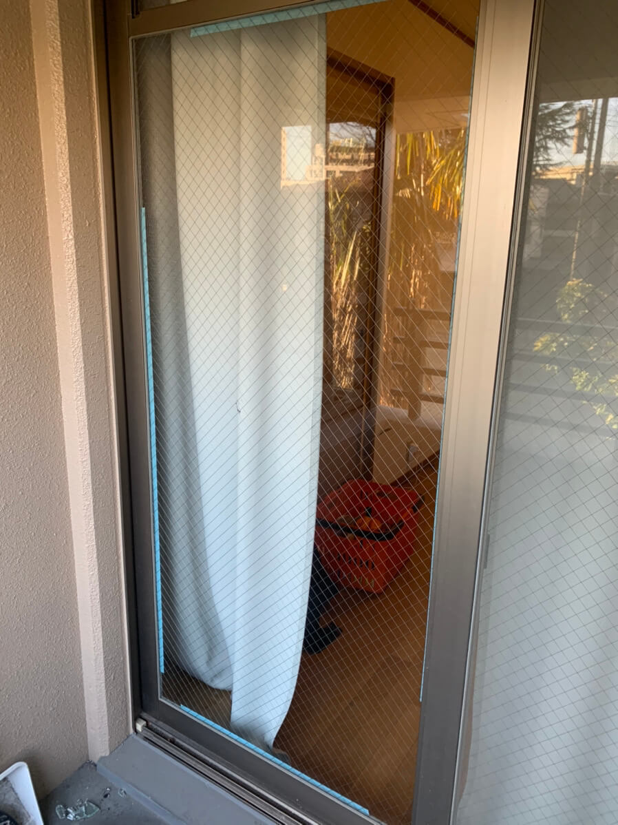 ベランダや室内に細かいガラス片が飛び散るので二次被害も出てしまう状況です。